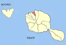 La commune se situe dans le Nord-Est de l'île de Tahiti. Elle est bordée par l'océan Pacifique. Face à une passe, elle a permis les rencontres avec les marins.
