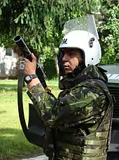 Soldat de la police militaire roumaine avec un lance-grenades AL-38.