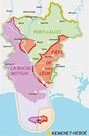 Par ailleurs la commune fait partie de l'aire d'attraction de Quimperlé, dont elle est une commune de la couronne[Note 2]. Cette aire, qui regroupe 11 communes, est catégorisée dans les aires de moins de 50 000 habitants[16],[17].