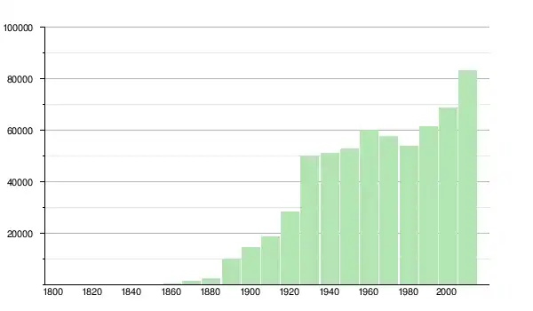 | 1950 | 53 000 | ▲ +3,29 % | |