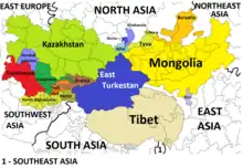 L'Asie centrale est une sous-région du continent asiatique qui s'étend de la mer Caspienne à l'ouest à la Mongolie à l'est, et de la Russie au nord à l'Iran et l'Afghanistan au sud. Elle regroupe cinq anciennes républiques soviétiques : l'Ouzbékistan, le Kazakhstan, le Kirghizistan, le Tadjikistan et le Turkménistan, ainsi que certaines parties de l'ouest et du nord de la Chine continentale.