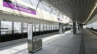 Établie en aérien, Aspernstrasse est une station de passage de la ligne U2 du métro de Vienne : elle est située entre la station Hausfeldstrasse, en direction du terminus est Seestadt, et la station Donauspital, en direction du terminus ouest Schottentor[1].