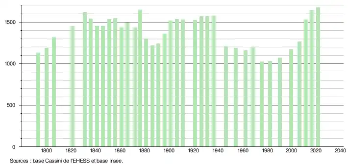 Au dernier recensement, la commune comptait 1 676 habitants.