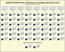 - Ne pas cocher de parti, et voter directement pour des candidats parmi plusieurs listes et/ou des candidats indépendants. L'électeur doit alors veiller à ce que le nombre de candidats sélectionnés n'excède pas le nombre de sièges à pourvoir dans la circonscription.