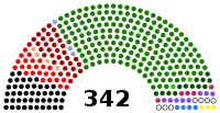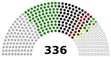 L'Assemblée nationale compte 336 membres, dont 272 sont élus au suffrage universel direct uninominal majoritaire à un tour et 70 au suffrage universel indirect. Les membres actuels de l'Assemblée sont élus à l'issue des élections législatives du 8 février 2024.