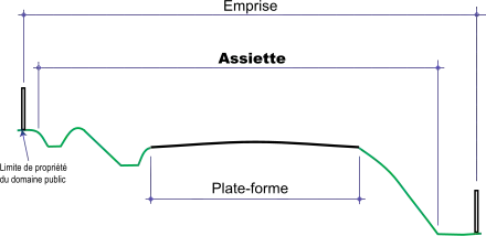 L’assiette est la projection horizontale de la distance entre limites de terrassement[2]