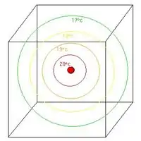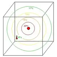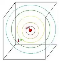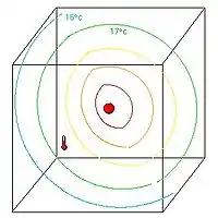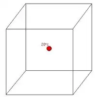 On souhaite connaître la température dans une pièce disposant d'une source de chaleur ponctuelle de 20 °C.