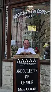L’Association amicale des amateurs d'andouillette authentique (AAAAA), dite aussi 5 A, regroupe des professionnels des métiers de bouche et de l'univers de la table (fabricants, restaurateurs, gastronomes connaisseurs de la charcuterie, critiques et chroniqueurs gastronomiques, en activité ou retraités). Dépourvue de tout but lucratif, cette amicale honore l'andouillette[1] habituellement considérée comme traditionnelle par le Code des usages de la charcuterie[2], souvent proclamée « authentique » sans références très précises, ainsi que diverses variétés d'andouilles qu'elle estime conformes à des traditions locales ou régionales[3]. L'association, à l'origine réunion amicale, très informelle, d'amateurs de bonne charcuterie, a longtemps organisé ses dégustations sans se soucier de règlement, puis s'est organisée de façon de plus en plus structurée après sa déclaration à la préfecture, publiée au Journal officiel en juillet 1994.