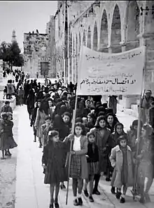 Lors du congrès est décidée la création d'un comité exécutif composé de quatorze femmes, épouses ou proches des dirigeants nationalistes arabes. Sa fonction consiste à organiser le mouvement féminin en Palestine pendant le mandat britannique[8]. Parmi ses membres figurent Matiel Mogannam, Khadija Husseini, Mélia Sakakini et Tarab Abd al-Hadi. Ce comité donne naissance à l'Association des femmes arabes, la plus importante association de femmes de l'époque en Palestine. Bien qu'elle semble avoir eu plusieurs dénominations, cette dernière était la plus courante. En plus de soutenir la lutte nationaliste et de mettre en œuvre les résolutions adoptées par le congrès, son but était d'améliorer la situation des femmes arabes en Palestine[9]. Ses membres participent aux manifestations contre le gouvernement britannique et proposent leur soutien aux familles de prisonniers politiques, en particulier après la révolte de 1936, au cours de laquelle la tension accumulée les années précédentes a abouti à une grande grève des Arabes et des épisodes de violence entre communautés. L'Association s'est subdivisée entre plusieurs sections dans différentes villes, notamment à Haïfa, Ramallah, Naplouse, Gaza, Acre et Jaffa[10].