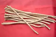 Du huangqi est frit et bouilli trois fois, puis du riz est ajouté pour faire une bouillie[19].