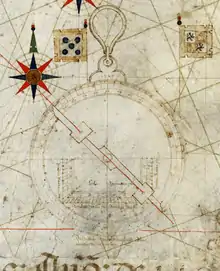 En 1529 Diego Ribero fait paraitre un planisphère-portulan où apparait un quadrant et un astrolabe nautique.