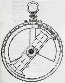 - un disque-mère dit « armille méridienne » comportant une double graduation sur un des quadrants supérieurs. On peut y lire directement la hauteur ou la distance zénithale ;