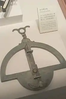 Pour finir, on peut remarquer l'astrolabe présenté en 2017 au « Hong Kong Museum of History ». Fonctionnellement, il est réduit à sa plus simple expression. Il comprend :