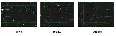 Du fait de cette précession, le premier signe du Zodiaque, le Bélier, débutera en général le 21 mars pour les tropicaux, et actuellement (début du XXIe siècle) vers le 15 avril pour les sidéraux.