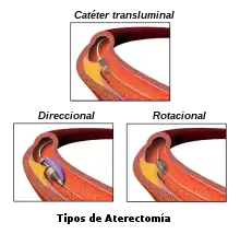 L'athérectomie transluminale est un dispositif de vide qui utilise des lames rotatives pour découper la plaque et un tube qui aspire les débris de la plaque dans un vide fixé au cathéter[2].