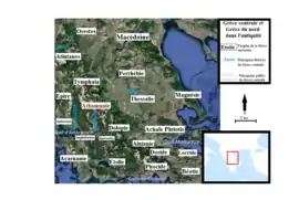 - C’est en tout cas ce que proposent Pierre Lévêque et Pierre Cabanes. Pierre Lévêque, Pyrrhos, Bibliothèque de l’École française d’Athènes et de Rome, fasc., Paris, E de Boccard, 1957, p. 194-195 ; Pierre Cabanes, l’Épire de la mort de Pyrrhos à la conquête romaine, 272-232, Annales littéraire de l’université de Besançon, Paris, 1976, p. 133.