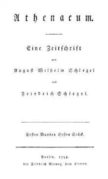 L’Athenaeum est une revue littéraire allemande fondée en 1798 par Auguste et Frédéric Schlegel. Elle est considérée comme la publication centrale du Premier romantisme allemand.