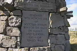 - Le 9 avril 1917, au premier jour de la bataille d’Arras, les soldats de la 9e Division Écossaise libèrent le village d’Athies. En l’honneur de cette division, au lieu-dit le Point du Jour au bord de la route Arras-Douai, un mémorial en forme de tour a été édifié comme un « cairn » : des pierres, ici des blocs de granit apportés d’Écosse, amoncelées en mémoire des morts suivant la tradition celtique. Ce cairn porte les noms des batailles auxquelles la Division a participé au cours de la Grande Guerre. Tout autour du monument, 26 pierres rappellent les unités qui la composaient.
