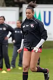 Anne-Cécile Ciofani, vice-championne du monde et vice championne olympique de rugby à sept, à l'échauffement.