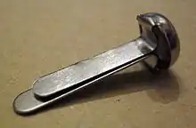 Elle est composée d'une tête bombée ou plate et de deux lamelles jointes dont l'une est légèrement plus courte que l'autre.