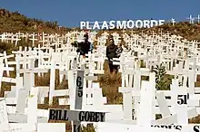 Pour 2019-2020, la police chiffre à 49 fermiers blancs tués sur un total de 21 325 victimes de meurtre dans tout le pays[68].