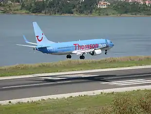 L'atterrissage est la phase finale de la procédure d'approche, qui se termine par la trajectoire appelée finale, dans l'axe de la piste, en descente avec une pente de 3°. C'est l'atterrissage classique d'un avion sur la terre ferme qui se déroule ensuite de la manière suivante :