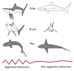 Les requins présentant ce comportement sont généralement sur le point d'attaquer ou de fuir[1].