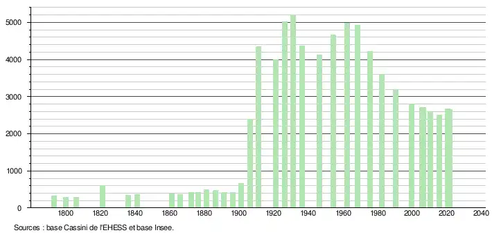- Population municipale légale en vigueur au 1er janvier 2024, millésimée 2021, définie dans les limites territoriales en vigueur au 1er janvier 2023, date de référence statistique : 1er janvier 2021.