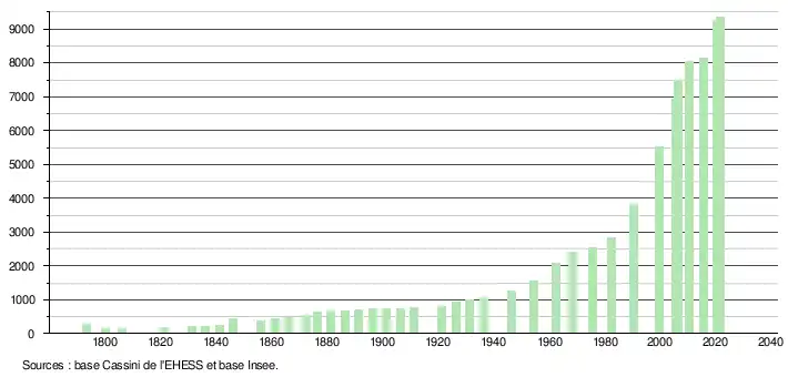 - Population municipale légale en vigueur au 1er janvier 2024, millésimée 2021, définie dans les limites territoriales en vigueur au 1er janvier 2023, date de référence statistique : 1er janvier 2021.