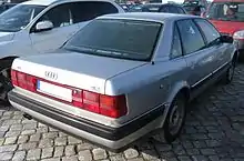 L'Audi V8[Note 1] est une automobile développée par le constructeur allemand Audi, proposée de 1988 à 1994 (les derniers modèles sortiront d'usine en 11/1993 et continueront de s'ecouler jusqu'au lancement de sa remplaçante présentée au Salon de Genève en mars 1994), prédécesseur de l'actuelle Audi A8. Construite sur la base d'une Audi 100, l'Audi V8 symbolise à la fois la montée en gamme de la marque allemande, mais également la possibilité de concurrencer les leaders du marché de l'époque que sont Mercedes-Benz et BMW. Un tout nouveau moteur V8 en aluminium et une transmission Quattro sont l'apanage de cette nouvelle Audi, présentée en 1988 au Mondial de l'automobile de Paris.