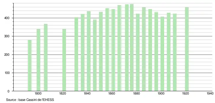 Jusqu'en 1921, la démographie d'Auffrique-et-Nogent était: