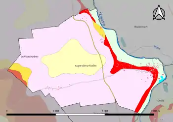 La commune d'Augerville-la-Rivière est vulnérable à différents aléas naturels : inondations (par débordement de l'Essonne), climatiques (hiver exceptionnel ou canicule), mouvements de terrains ou sismique (sismicité très faible)[39]. Entre 1989 et 2019, deux arrêtés ministériels ayant porté reconnaissance de catastrophe naturelle ont été pris pour le territoire de la commune pour des inondations et coulées de boues[40].