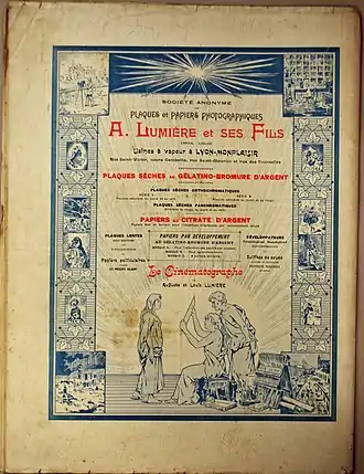 « C'est à la fin de l'été 1894, sur la demande de leur père émerveillé par le Kinétoscope d'Edison[11] », qu'Auguste et Louis se lancent dans la recherche d'un mécanisme permettant de projeter des images photographiques animées devant un public. Lors d'un voyage à Paris en 1894, leur père Antoine avait assisté sur les grands boulevards à une démonstration de l'appareil de visionnement inventé par William Kennedy Laurie Dickson, l'assistant de Thomas Edison pour voir individuellement les premiers films réalisés par Dickson avec la première caméra de cinéma, le kinétographe, utilisant un support souple et résistant inventé par John Carbutt et commercialisée par George Eastman, qu'Edison avait eu l'idée de débiter en bobineaux de 35 mm de large, perforés sur les bords pour assurer l'entraînement intermittent par des rouleaux dentés. « Le cinéma, tel que nous le connaissons aujourd'hui, a commencé avec l'invention du kinétographe et du kinétoscope. Ces deux appareils représentent la première méthode viable de la cinématographie. »[12] Antoine Lumière avait aussi eu l'occasion d'assister à une projection des premiers dessins animés du cinéma, peints directement par Émile Reynaud sur une pellicule de 70 mm de large. Les Lumière étaient persuadés qu'il leur fallait inventer une machine qui couplerait la pellicule photographique perforée du type Edison avec une projection sur grand écran devant un public assemblé, à la manière de Reynaud. Le 26 décembre 1894, un article du Lyon républicain rapporte que « les frères Lumière [...] travaillent actuellement à la construction d’un nouveau kinétographe, non moins remarquable que celui d’Edison et dont les Lyonnais auront sous peu, croyons-nous, la primeur. »[13] Comme on le constate, le kinétographe Edison est encore la référence, puisque, d'un point de vue historique, il est le premier appareil de prise de vues cinématographiques. Mais l'invention des frères lyonnais va le supplanter. Auguste est le premier à développer leur projet avec un mécanicien des usines Lumière, Charles Moisson, et cet essai aboutit à un échec.