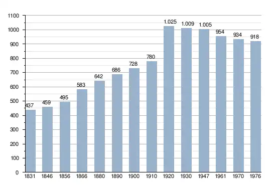 - Sources : INS, Rem. : 1831 jusqu'en 1970 = recensements, 1976 = nombre d'habitants au 31 décembre.