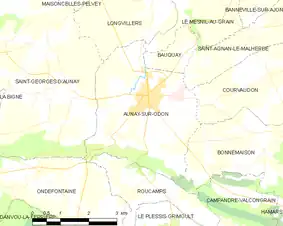 En 1895, Aunay devient Aunay-sur-Odon. L'Odon longe l'agglomération à l'ouest.