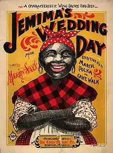 L'inspiration du personnage de Tante Jemima vient de la chanson de vaudeville et minstrel show de Billy Kersands Old Aunt Jemima (Vieille Tante Jemima), écrite en 1875. Le personnage de Tante Jemima était important dans les spectacles itinérants de la fin du XIXe siècle, et a plus tard été adopté par intérêt commercial comme nom de marque.
