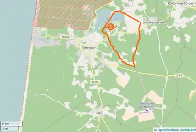 Les communes limitrophes sont Mimizan, Sainte-Eulalie-en-Born et Saint-Paul-en-Born.