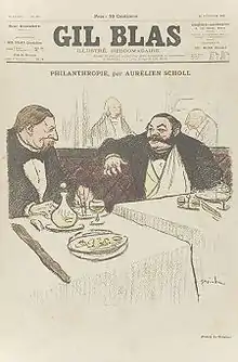 Antoine Aurélien Scholl, né le à Bordeaux[1] et mort le à Paris 9e[2], est un journaliste, auteur dramatique, chroniqueur et romancier français.