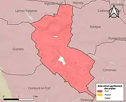 Le retrait-gonflement des sols argileux est susceptible d'engendrer des dommages importants aux bâtiments en cas d’alternance de périodes de sécheresse et de pluie. 98,7 % de la superficie communale est en aléa moyen ou fort (88,8 % au niveau départemental et 48,5 % au niveau national). Sur les 334 bâtiments dénombrés sur la commune en 2019, 332 sont en aléa moyen ou fort, soit 99 %, à comparer aux 98 % au niveau départemental et 54 % au niveau national. Une cartographie de l'exposition du territoire national au retrait gonflement des sols argileux est disponible sur le site du BRGM[26],[Carte 3].