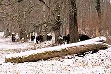 Les Allemands relâcheront des aurochs de Heck « tout d'abord dans les forêts de Prusse-Orientale et puis dans la Pologne occupée par l'armée nazie dans la forêt de Białowieża[33] ». Des bisons seront également relâchés dans cette forêt. Les aurochs de Heck relâchés ne semblent pas avoir survécu à la guerre ou à leur contact avec la nature sauvage.