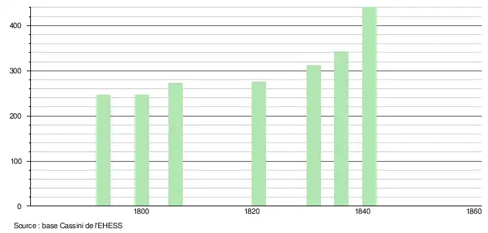 Jusqu'en 1843, la démographie d'Auroir-Aubigny était :