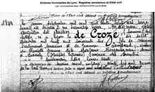 Après trois années de souffrance peu actives, Augustin de Croze meurt d'emphysème à Lyon le 1er septembre 1937, dans le dénuement[11],[12],[13],[14].