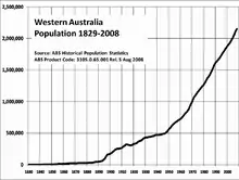 Menée par les migrants des îles Britanniques, la population de l'Australie-Occidentale s'est développée à un taux plus rapide pendant le XXe siècle qu'au siècle précédent. Avec les États orientaux, l'Australie-Occidentale a reçu un grand nombre d'Italiens, de Yougoslaves et de Grecs après la Seconde Guerre mondiale. En dépit de cela, la majorité des immigrants est originaire de Grande-Bretagne, et l'Australie-Occidentale — particulièrement Perth — a la plus grande proportion de résidents nés en Grande-Bretagne par rapport aux autres États : 10,6 % en 2006, par rapport à une moyenne nationale de 5,3 %. Ce groupe est fortement concentré dans certaines parties de l'aire urbaine comme à Joondalup où il représente un quart de la population.