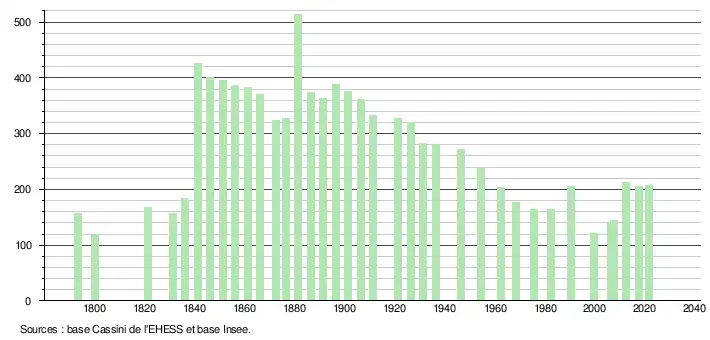 - Fiches Insee - Populations légales de la commune pour les années 2006, 2007, 2008, 2009, 2010, 2011, 2012, 2013, 2014, 2015, 2016, 2017, 2018, 2019, 2020 et 2021.