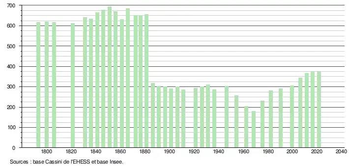 - Population municipale légale en vigueur au 1er janvier 2024, millésimée 2021, définie dans les limites territoriales en vigueur au 1er janvier 2023, date de référence statistique : 1er janvier 2021.