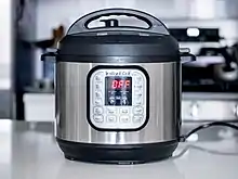 Après les autocuiseurs sur cuisinière sont apparus en 1991 les autocuiseurs électriques, vendus aussi sous l'appellation de multicuiseurs, qui disposent d'un contrôle numérique du temps de cuisson et de la température[14]. Le multicuiseur Instant Pot (en) est un exemple de cette catégorie.