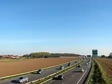 L'A25 au sud-ouest de Lille, à hauteur de la sortie no 4, vue vers l'est.