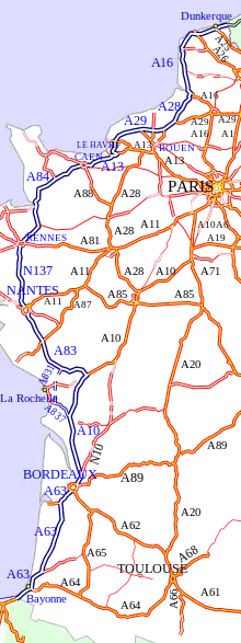 - A83 : Nantes-Fontenay-le-Comte-Niort