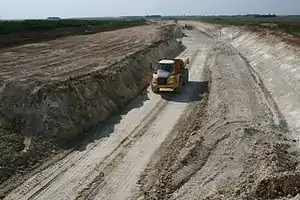 Commencés en août 2006, les terrassements en « grande masse » seront réalisés à partir de février-mars 2007 sur l’ensemble du tracé. Une année sera alors nécessaire pour mettre en forme l’autoroute, les voies de rabattement, les aires, les accès, les réseaux hydrauliques, les bassins de décantation[20].