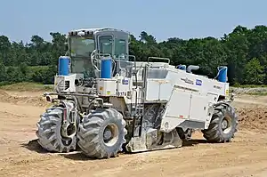Pour améliorer la portance des sols, un traitement aux liants hydrauliques a été réalisé. On a pu voir ainsi jusqu’à huit ateliers complets de traitement de sol (épandeuse Panien – stabilisatrice de sol Wirtgen 2500). Le dosage en matériaux hydrauliques est de 5 % pour les couches de forme et de 2,5 % pour l’arase avec des ajouts d’eau qui peuvent aller jusqu’à 60 l/m³. Au total ce sont plus de 3 000 000 m3 de matériaux qui ont été valorisés[36].